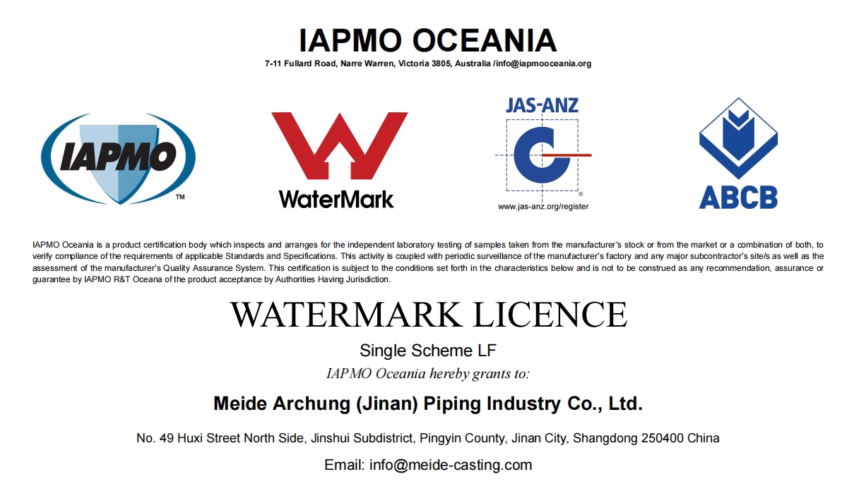 Meide Group got the WaterMark Licence for Stainless steel single clamp pressure fittings.