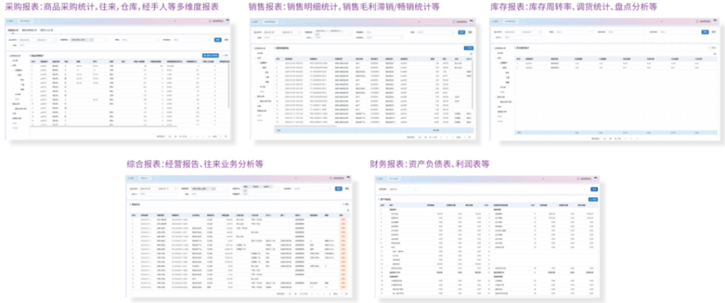 提供豐富多樣的報表,包括采購報表、銷售報表、庫存報表等,幫助您全面了解企業運營情況,為決策提供依據。