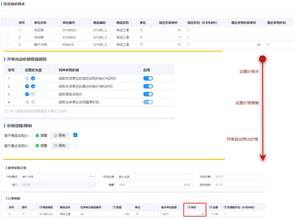 在采購模業務中,采購人員需要收集匯集采購需求,與供應商溝通采購價格與到貨時間,下達采購計劃,到貨后,錄入采購入庫單,確保庫存信息準確無誤。同時,及時與財務部門協調付款事宜,此外還需要處理退換貨等異常情況。采購管理模塊為采購人員提供全方位支持。