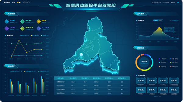 智慧供熱管控平臺針對現有換熱站及熱源系統,具備供熱概覽、全面監控、氣象參數、能耗分析、單耗分析、室溫采集、室溫平衡、室溫達標統計等模塊。關鍵數據一圖全覽,為全網熱量平衡、水力平衡、安全節能運行提供優質高效服務,實現多熱源聯網、供熱平衡調控、節能優化運行、安全運行、智能化運行管理的目標。