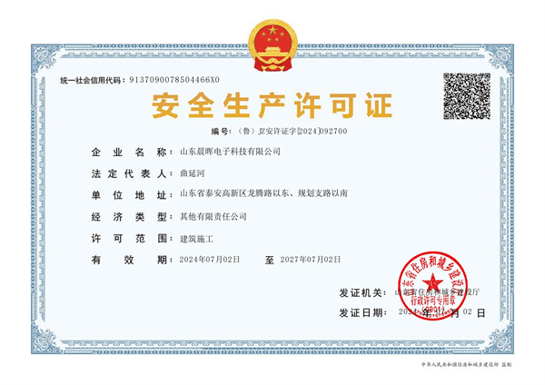 2024年7月2日,玫德集團旗下山東晨暉電子科技有限公司榮獲建筑施工企業安全生產許可證,這標志著山東晨暉在建筑行業安全管理方面邁出了堅實的步伐。