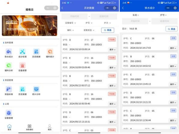 管理人員足不出戶即可對(duì)現(xiàn)場(chǎng)設(shè)備進(jìn)行管理、工人加料結(jié)果管理和設(shè)備狀態(tài)異常管理。支持根據(jù)年/月/日/爐號(hào)進(jìn)行歷史數(shù)據(jù)查詢與統(tǒng)計(jì),實(shí)現(xiàn)產(chǎn)品質(zhì)量100%追溯。